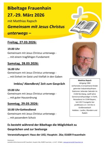 Bibeltage mit Matthias Rapsch vom 27. — 29. März 2026 Mehr erfahren